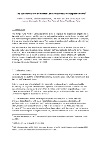 The King’s Fund Point of Care programme aims to improve the experience of patients in hospital and to support staff to provide high-quality, patient-centred care. Hospital staff are working in highly pressurised environments and the nature of their work is complex, intense and emotionally challenging. This has an impact on ...