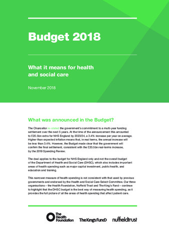 Budget 2018 : what it means for health and social care.