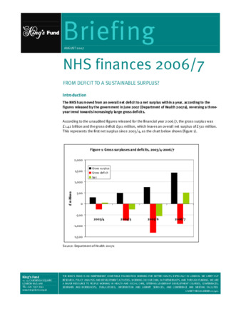 The NHS has moved from an overall net deficit to a net surplus within a year, according to the figures released by the government in June 2007 (Department of Health 2007), reversing a three year trend towards increasingly large gross deficits. The government argues that these latest figures show that ...