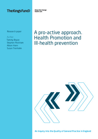 A pro-active approach : health promotion and ill-health prevention.
