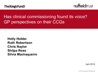 Has clinical commissioning found its voice? : GP perspectives on their CCGs.