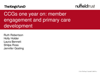 Primary care co-commissioning : a survey of members’ views of their CCG and its role in primary care.