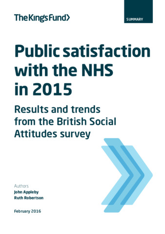 Public satisfaction with the NHS in 2015 : results and trends from the British Social Attitudes survey.