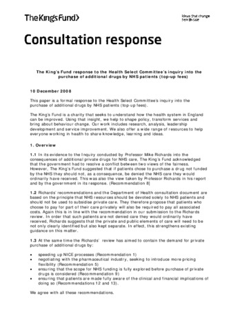 King's Fund response to the Health Select Committee's inquiry into the purchase of additional drugs by NHS patients (top-up fees).