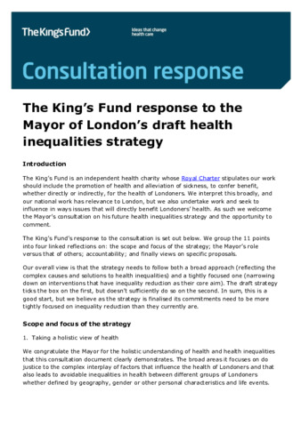 Consultation response : The King’s Fund response to the Mayor of London’s draft health inequalities strategy.