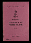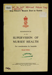 This memorandum makes recommendations to ensure a good standard of health among nurses. The main recommendations are: that a doctor be appointed specifically for the nursing staff; that hospitals should require a medical certificate before candidates are accepted for training, and that a medical examination is carried out shortly after ...