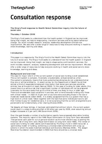 The King's Fund response to the Health Select Committee Inquiry into the future of...