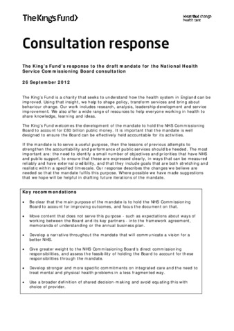 Consultation response : The King’s Fund’s response to the draft mandate for the National Health Service Commissioning Board consultation.