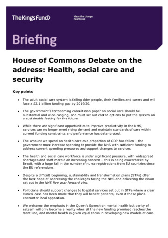 House of Commons Debate on the address : health, social care and security.