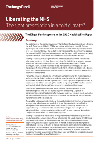 Liberating the NHS : the right prescription in a cold climate? : The King's Fund response to the 2010 health white paper.