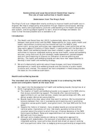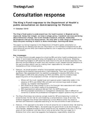 The King’s Fund’s response to the Department of Health's public consultation on Co...