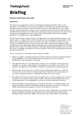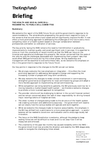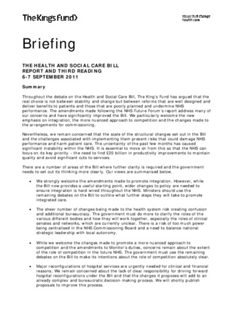 Briefing : Health and Social Care Bill : report and third reading.