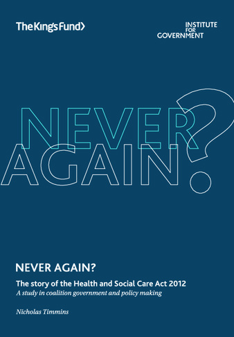 'Never Again?' tells the story of how and why the Health and Social Care Act 2012 - by far the most controversial piece of NHS legislation in more than two decades - became law.