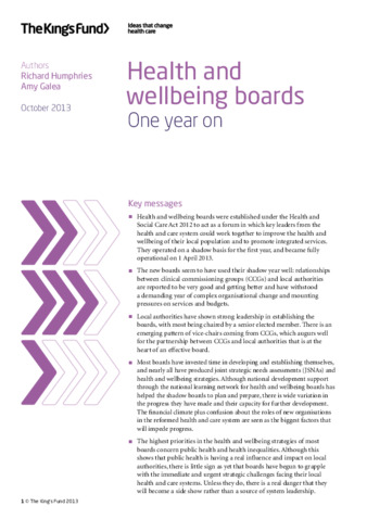 Health and wellbeing boards are an important feature of the reforms introduced by the government in the Health and Social Care Act 2012. Unlike other aspects of the changes, the creation of these new bodies has been widely welcomed and enjoys cross-party support. All upper-tier local authorities set up boards ...