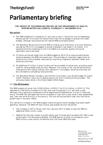 The impact of the Spending Review on the Department of Health : Westminster Hall debate, Thursday 11th November 2010